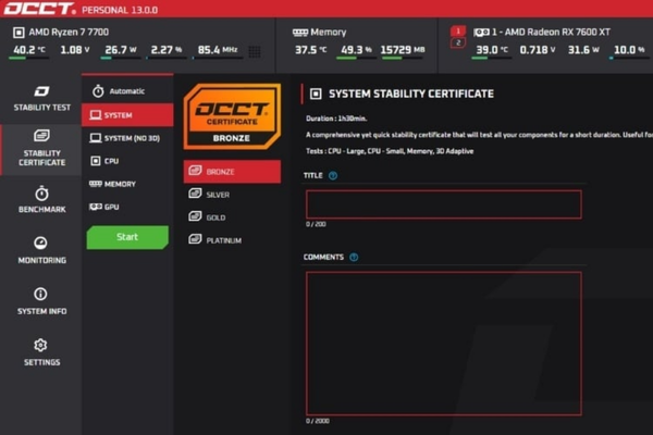 - Giám sát nhiệt độ / điện áp / xung nhịp: Trong khi test, phần mềm giám sát sẽ theo dõi các thông số quan trọng, giúp bạn phát hiện sớm tình trạng quá nhiệt hoặc dao động điện áp.