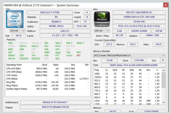 - Thông tin phần cứng đầy đủ
