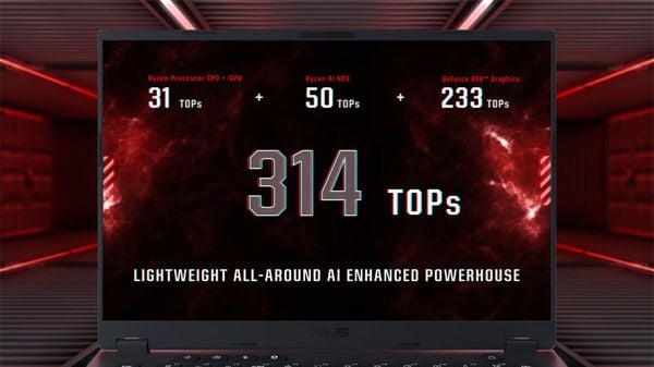 Yếu tố chính giúp cho Laptop gaming ASUS TUF A14 FA401 2024 trở thành một phiên bản laptop gaming AI hoàn hảo để "định giang sơn" đó chính là bộ vi xử lý AMD Ryzen AI 9 HX 370. Đây là CPU AI mới nhất đến từ đội đỏ dành riêng cho các máy laptop sở hữu khả năng xử lý AI vượt trội nếu không muốn nói rằng mạnh đây chính là CPU AI mạnh nhất thế giới - với 12 nhân 24 luồng cùng NPU tốc độ 50 TOPs. Với sức mạnh này, các tác vụ AI hiện tại và trong tương lai sẽ luôn được đảm bảo xử lý mượt mà nhất để cải thiện năng suất làm việc cũng như hiệu suất giải trí.