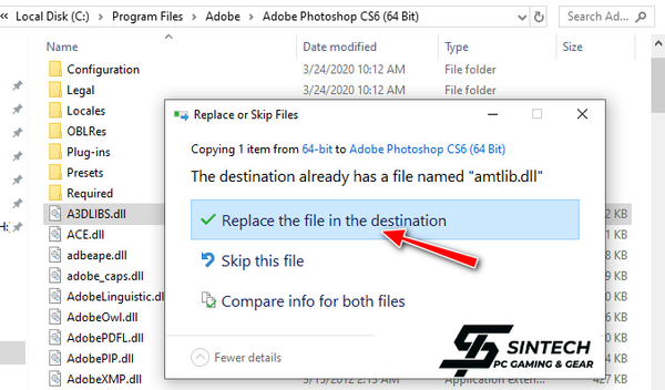- Các bạn dán vào và chọn Replace the file in the destinaion