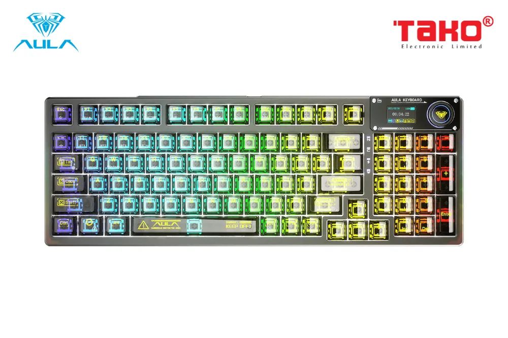 Bàn phím cơ Aula F98 Pro 3 Mode Có Màn Hình Phụ, Núm Xoay, Keycap Trong Suốt