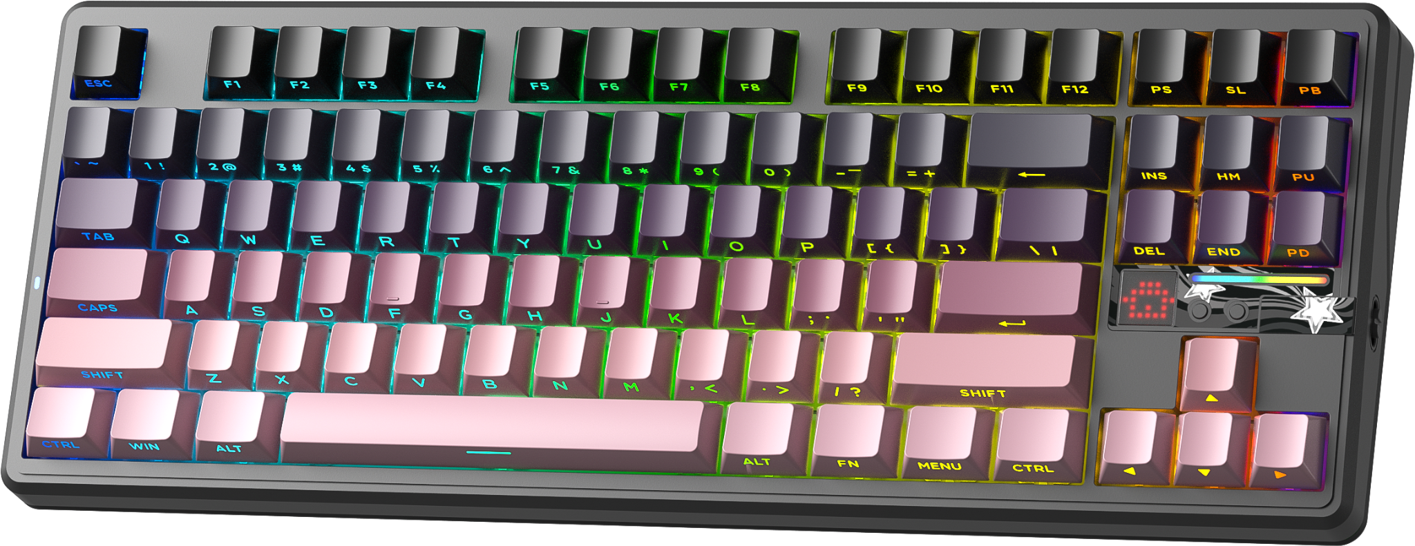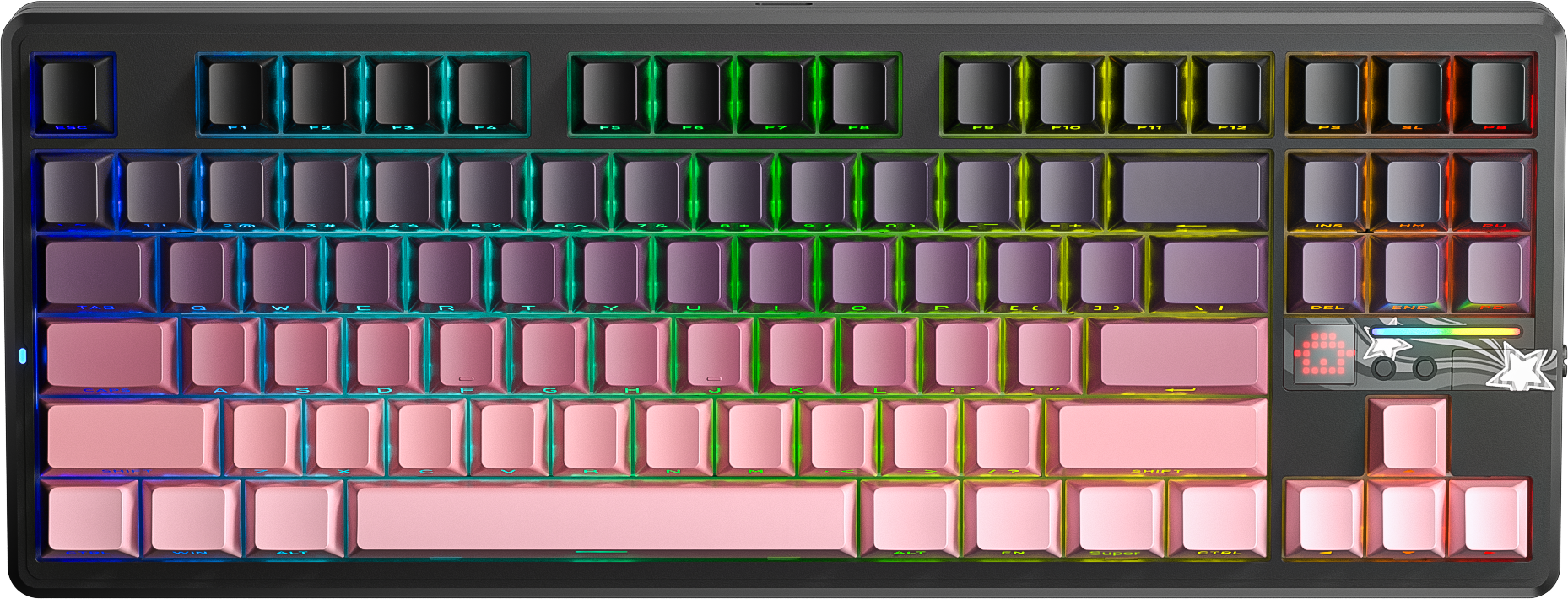 Màu đen – hồng gradient cá tính, LED RGB nổi bật cả ban ngày lẫn ban đêm.