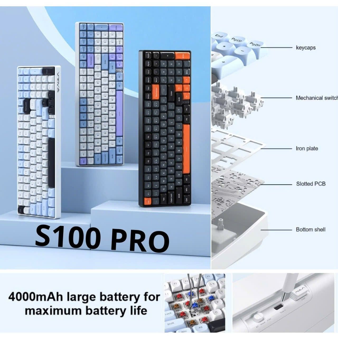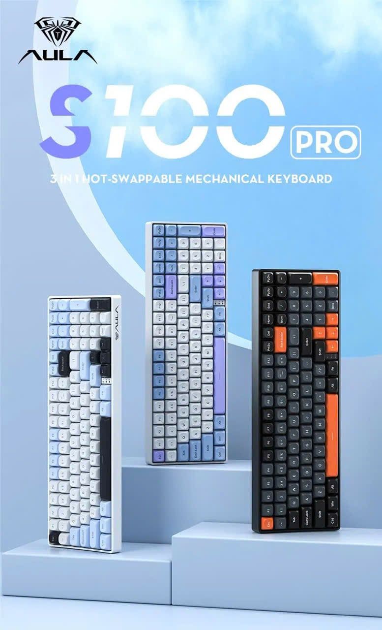 BÀN PHÍM CƠ GAMING AULA S100 PRO (3411) 3 MODE  (Phiên bản Đen+xám+cam/ Red switch)