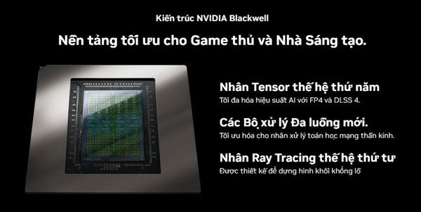 Card sử dụng 16GB GDDR7, tốc độ 30 Gbps với băng thông 256-bit, giúp tăng tốc độ truyền dữ liệu, giảm độ trễ và tối ưu hóa khả năng xử lý đồ họa. Công nghệ DLSS 4.0 mới nhất từ NVIDIA giúp tái tạo hình ảnh sắc nét hơn mà vẫn giữ được hiệu suất cao, đặc biệt quan trọng với các tựa game nặng.