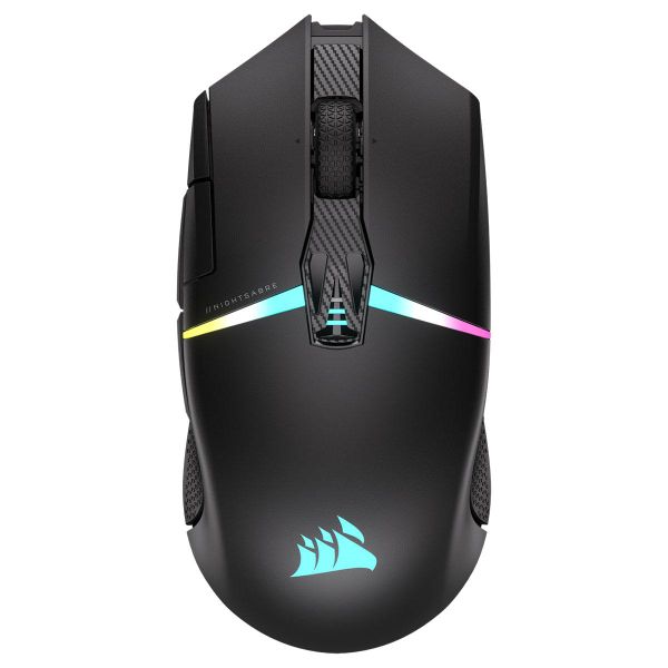 Corsair NightSabre trang bị cảm biến Corsair Marksman và hỗ trợ 26.000 DPI, 650 IPS với khả năng tăng tốc trọng lượng 50g. Thiết bị có một nút bấm nhanh và người dùng có thể tự chọn giá trị DPI. Sự hiện diện của nút bấm nhanh giúp loại bỏ độ trễ bật lại trong khi chơi trò chơi. Có tổng cộng 11 nút trên chuột chơi game không dây và thời gian phản hồi là 1ms. Chuột có thể được sử dụng cho cả kết nối có dây và không dây, vì sản phẩm hỗ trợ kết nối Bluetooth.