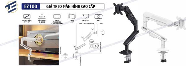 Nếu bạn đang tìm kiếm một giải pháp nâng tầm trải nghiệm làm việc hoặc giải trí tại nhà, giá treo màn hình Ergotek EZ100 chính là lựa chọn đáng cân nhắc. Sản phẩm hỗ trợ màn hình từ 27 đến 40 inch, khả năng chịu tải mạnh mẽ từ 3 – 12 kg, tương thích với chuẩn gắn VESA 75x75 mm và 100x100 mm. Với thiết kế linh hoạt, dễ lắp đặt và điều chỉnh, EZ100 mang lại sự thoải mái tối đa và giúp không gian trở nên gọn gàng, hiện đại hơn.