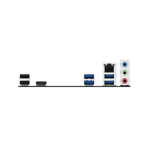 | Cổng I/O sau | 4 x USB 5Gbps ports (4 x Type-A) 2 x USB 2.0 ports (2 x Type-A) 1 x HDMI™ port 1 x Realtek 1Gb Ethernet port 3 x Audio jacks |