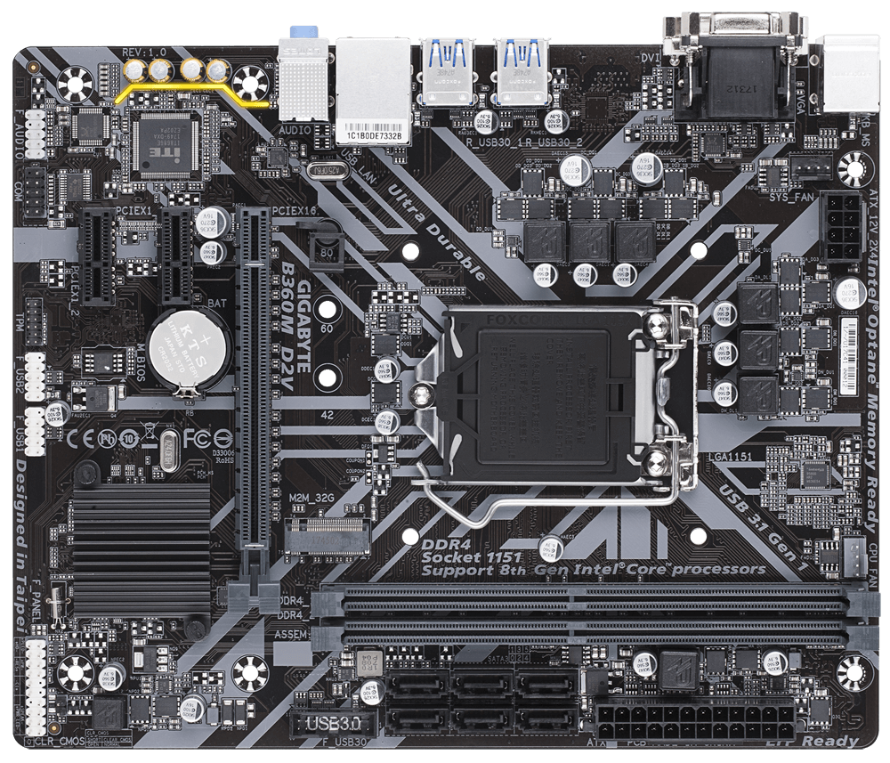 Mainboard Gigabyte B360M D2V DDR4 là lựa chọn phổ biến cho các hệ thống văn phòng, học tập hoặc gaming tầm trung sử dụng CPU Intel thế hệ 8 và 9. Với socket LGA 1151 và chipset B360, bo mạch hỗ trợ đa dạng dòng CPU Core i3, i5, i7, đem lại sự linh hoạt khi nâng cấp.