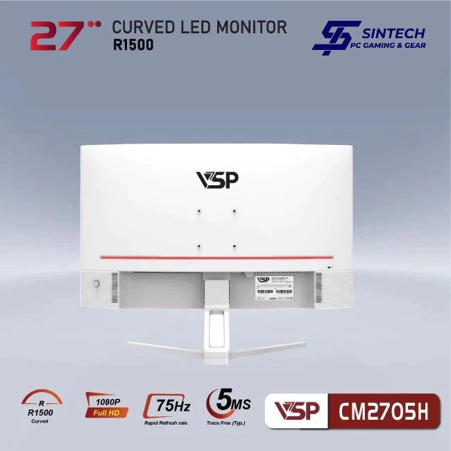 Với CM27xx series màn hình VSP CM2705H trang bị tấm nền VA, độ cong R1500, tầng số đáp ứng 65Ms và 75Hz cho độ phân giải full HD 1920 x 1080px. Với thiết kế vòm cung R1500 màn hình cong VSP cho trãi nghiệm hình ảnh sống động đáp ứng cho nhu cầ học tập giải trí và làm việc của bạn.