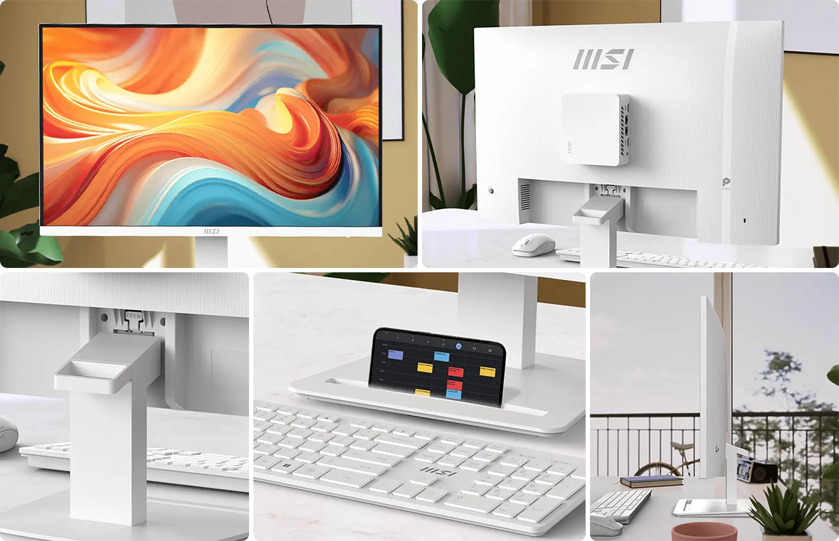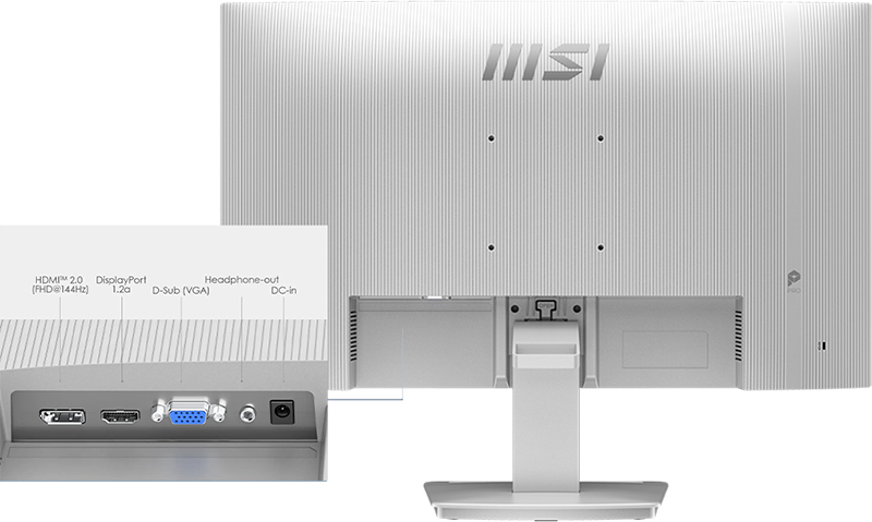 MSI PRO MP273W E14A hỗ trợ VESA 100 x 100 mm, dễ dàng treo tường hoặc gắn arm màn hình, giúp tối ưu không gian làm việc. Thiết kế Accessory Slot phía sau cho phép đặt bút MSI hoặc smartphone, giữ bàn làm việc gọn gàng hơn.