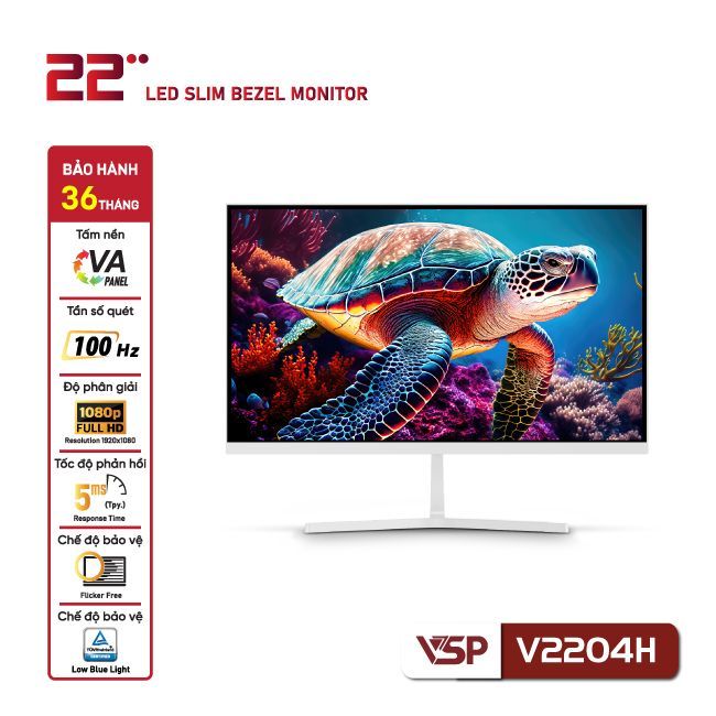 Màn hình phẳng LED VSP 22 inch tràn viền V2204H, 100Hz | Trắng