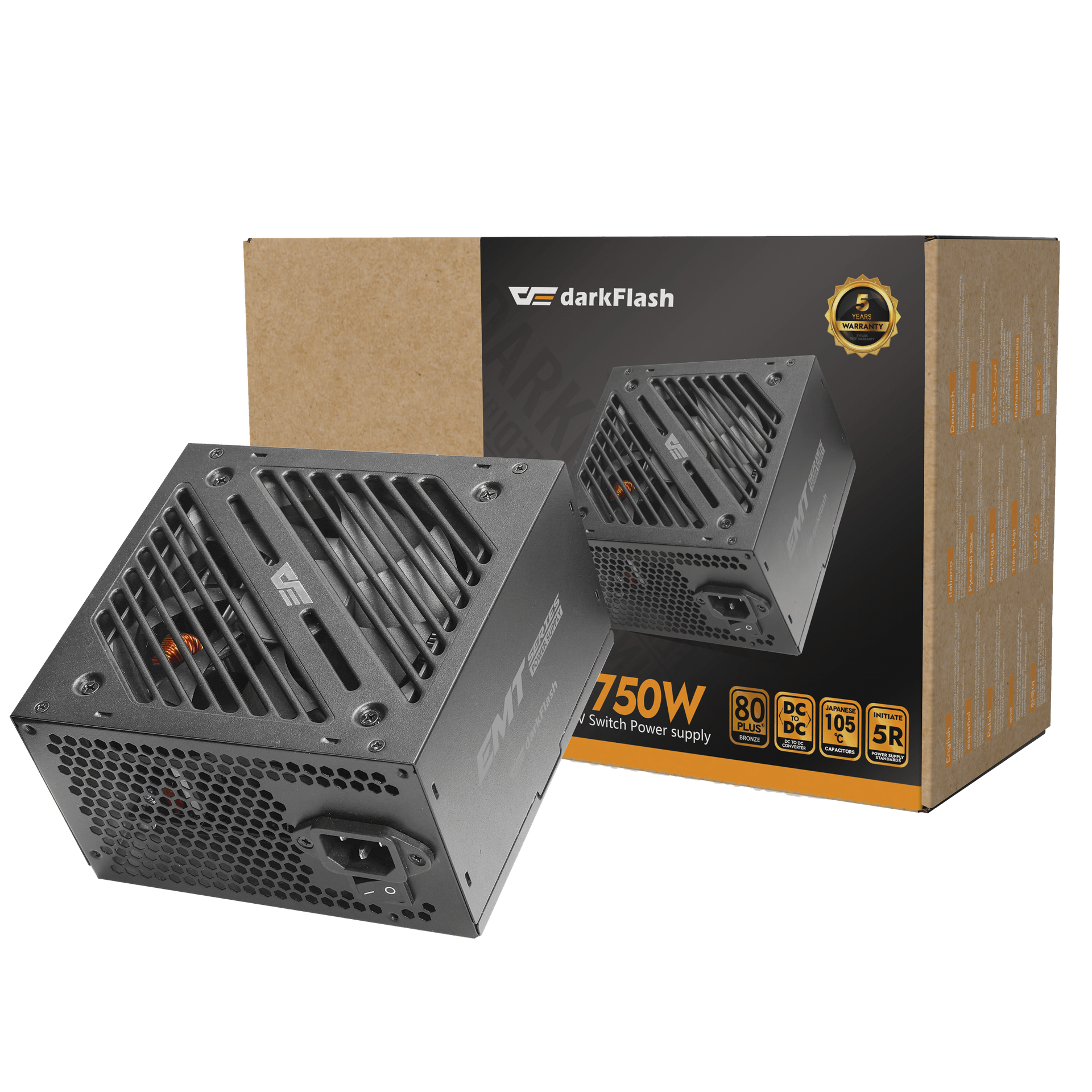 Với mức 750W, DarkFlash EMT750 đủ khả năng cung cấp điện ổn định cho CPU hiệu năng cao, card đồ họa rời và nhiều thiết bị ngoại vi. Đây là mức công suất lý tưởng cho các cấu hình sử dụng GPU phổ biến hiện nay, giúp hệ thống hoạt động mượt mà ngay cả khi tải nặng hoặc chơi game trong thời gian dài.