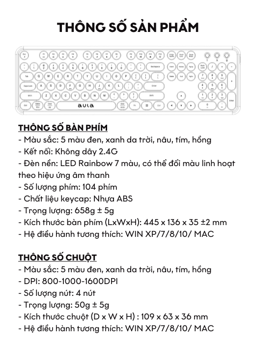 Năm 1880, máy đánh chữ được phổ biến rộng rãi trong các văn phòng và đến nay vẫn được các nhà sưu tầm đồ cổ ưa chuộng. Giờ đây, AULA mang đến cho bạn một mẫu bàn phím có keycap được thiết kế như một chiếc máy đánh chữ cổ điển nhưng lại kết hợp với công nghệ hiện đại. TAKO tin rằng AULA AC306 combo sẽ là sự lựa chọn tuyệt vời dành cho các bạn trả đam mê sản phẩm phong cách retro.