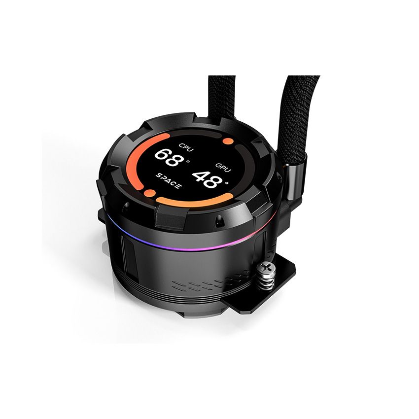 Phiên bản ID-Cooling Space SL360 ARGB với phần màn hình hiển thị lớn có kích thước 2.1” ngay phía trên phần pump nước, với độ phân giải 480x480, độ sâu màu 24 bits, 16.7 triệu màu sẽ mang lại hình ảnh sắc nét và có góc nhìn rộng. Bên cạnh đó, ngoài việc hiển thị các thông sô cơ bản của máy tính như nhiệt độ, tốc độ quạt hay xung nhịp thì người dùng có thể tải lên các hình ảnh hoặc video cá nhân lên thông qua phần mềm ID-Cooling Space Control và hiển thị theo ý thích một cách dễ dàng.