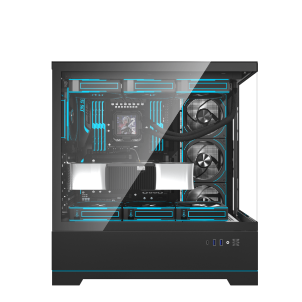 Với kích thước 451 × 258 × 460 mm (L × W × H) và hai màu sắc tùy chọn: Đen hoặc Trắng, DY451 Pro được chế tạo từ kim loại chắc chắn kết hợp kính cường lực. Thiết kế không chỉ sang trọng mà còn bền bỉ, giúp hiển thị hoàn hảo các linh kiện bên trong.