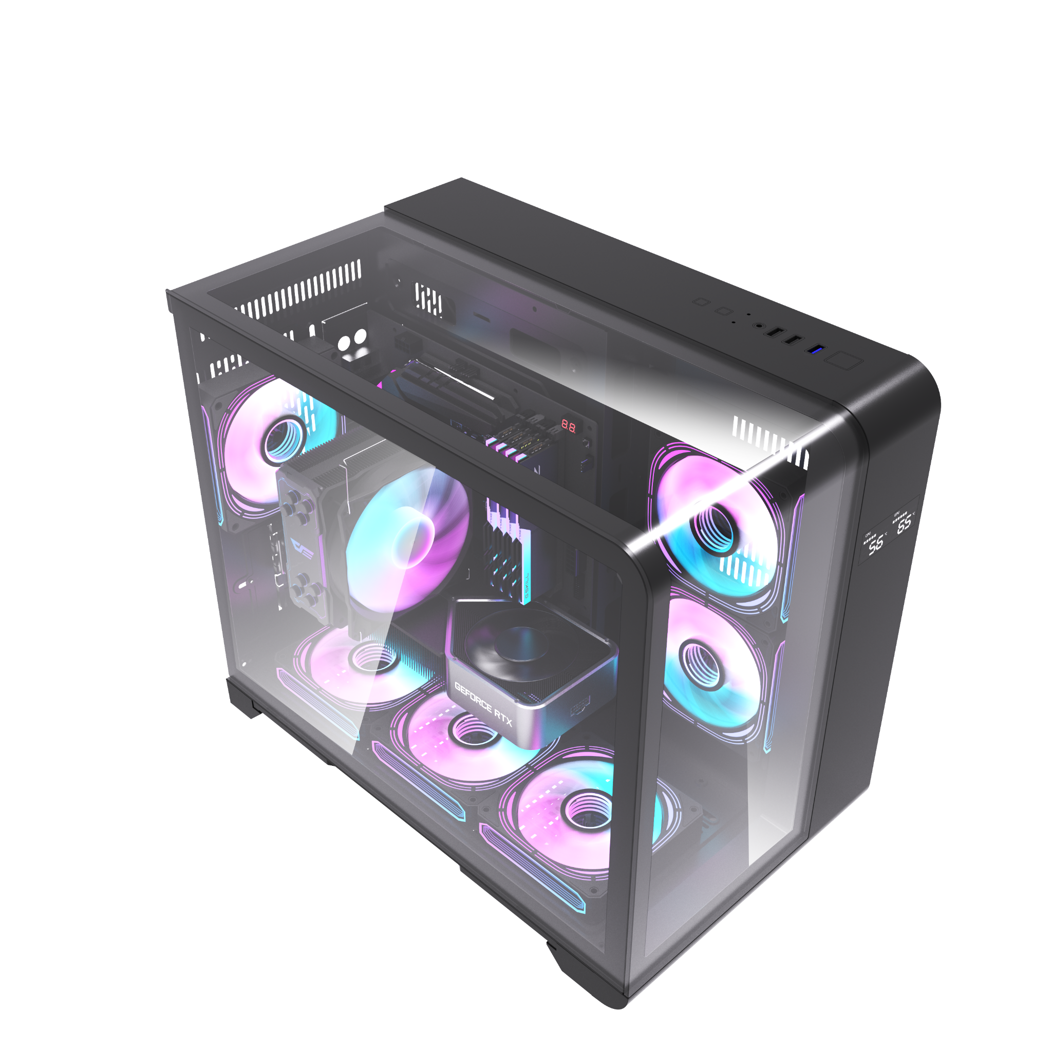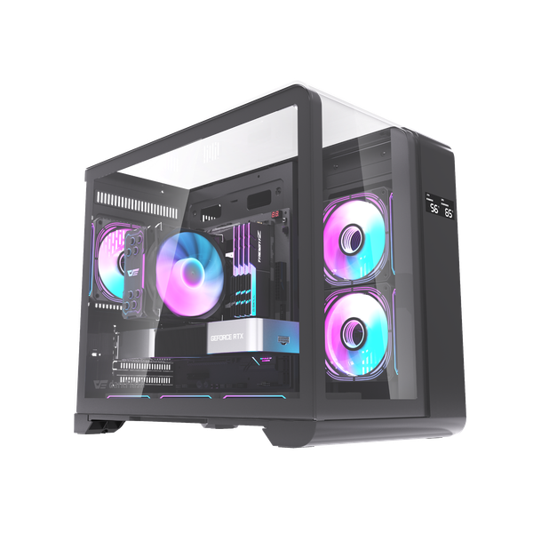 Case được làm từ thép cao cấp, đi kèm mặt bên kính cường lực giúp phô diễn linh kiện và hệ thống LED bên trong. Kích thước 443 × 280 × 380 mm đảm bảo không gian thoải mái để build cấu hình cao cấp, đồng thời vẫn giữ sự gọn gàng trên bàn làm việc.