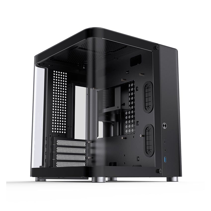 Thuộc sản phẩm của hãng sản xuất vỏ case có tiếng trong ngành, Jonsbo TK-1 BLACK sở hữu thiết kế vô cùng đặc biệt với phong cách "bể cá" gồm mặt trước và cạnh bên trái là kính cường lực. Điều đặc biệt nằm ở chính tấm kính này khi nó là một tấm kính được bo cong liền mạch (được dán phim chống cháy nổ) với cả 2 mặt tạo cảm giác "vô cực" đồng thời cũng phù hợp với tổng thể bo góc của vỏ case. Đây cũng chính là thành phần giúp bạn khoe những linh kiện chất lượng bên trong dàn PC của mình.
