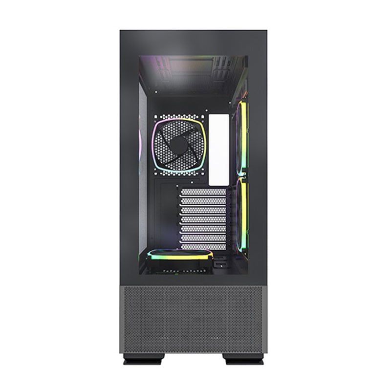 SKY TWO GX được trang bị 3 quạt AX140 ARGB PWM ở phía trước, đảm bảo sự kết hợp giữa luồng không khí cao và mức độ tiếng ồn thấp. Tốc độ quạt có thể điều chỉnh thông qua chức năng PWM, cho phép đồng bộ hóa với bo mạch chủ để có màn hình ánh sáng cá nhân hóa.